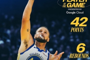全场比赛库里25中14、其中三分12中6,轰下42分6板7助1帽,下半场28分,包括关键时刻连得球队的16分。