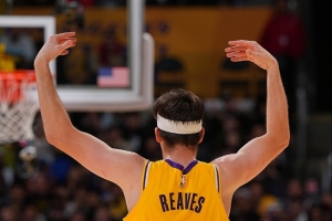 体育资讯10月27日讯 NBA常规赛,湖人对阵国王。目前比赛进行至第四节,里夫斯已经砍下45分8篮板8助攻。